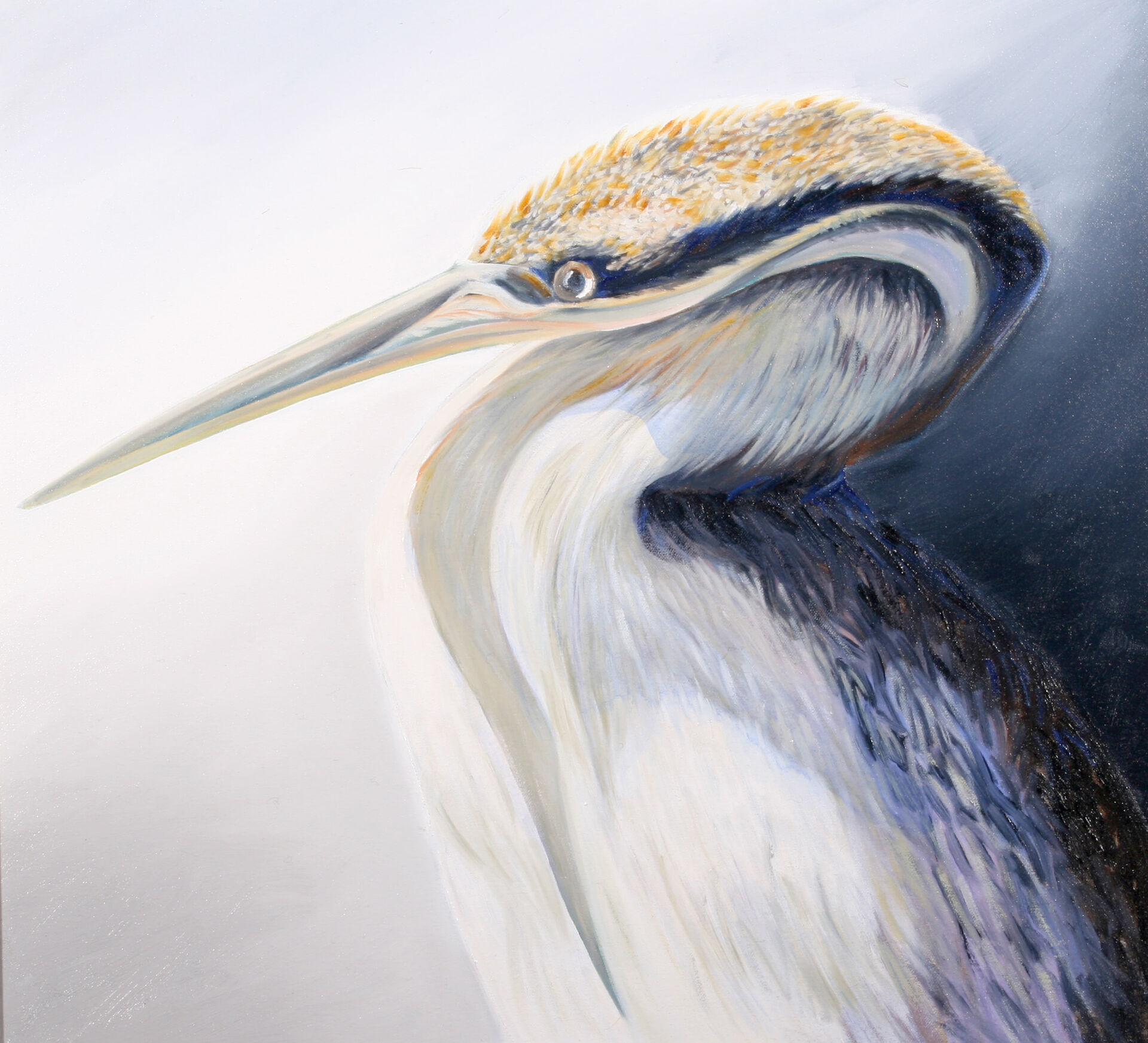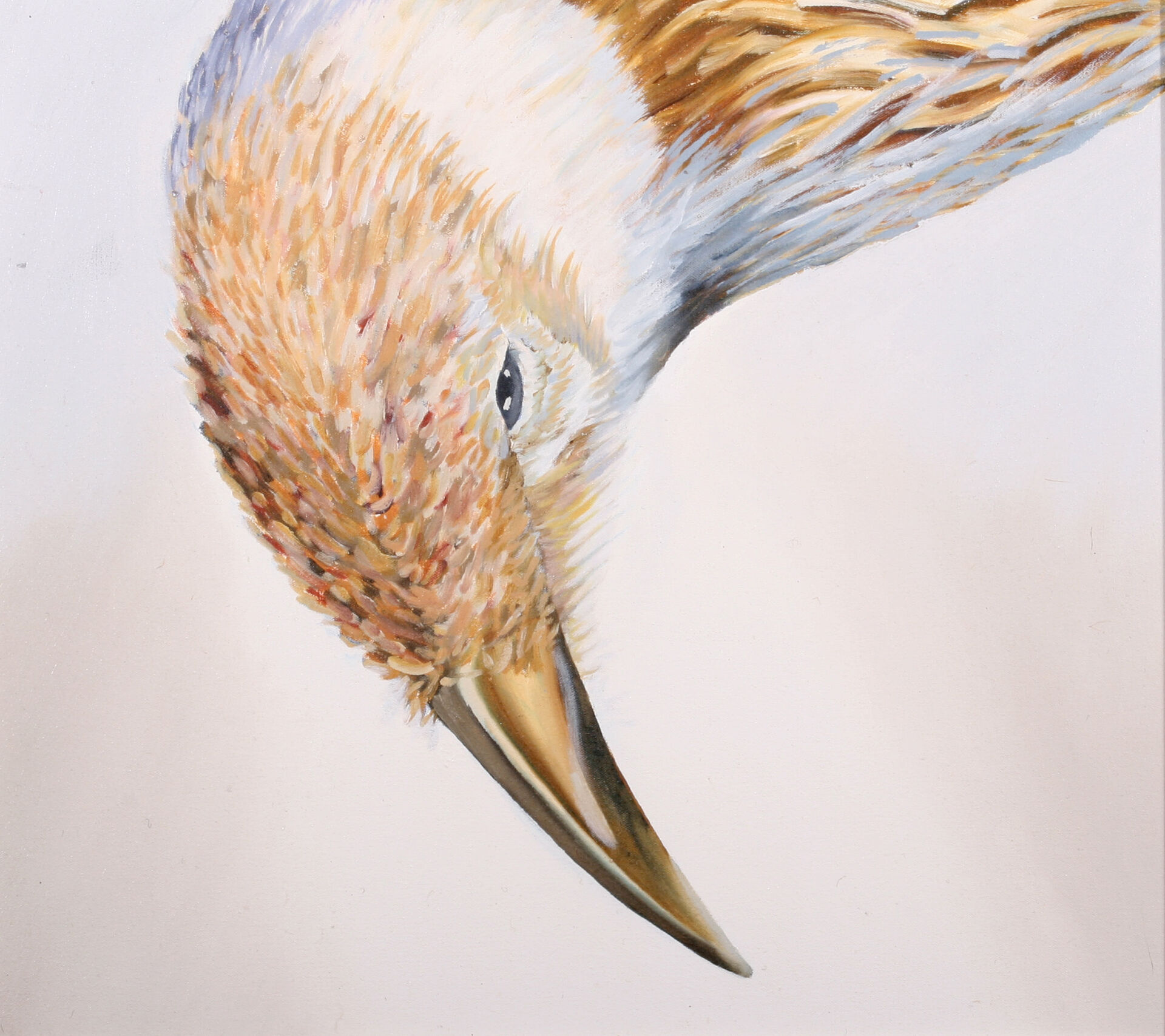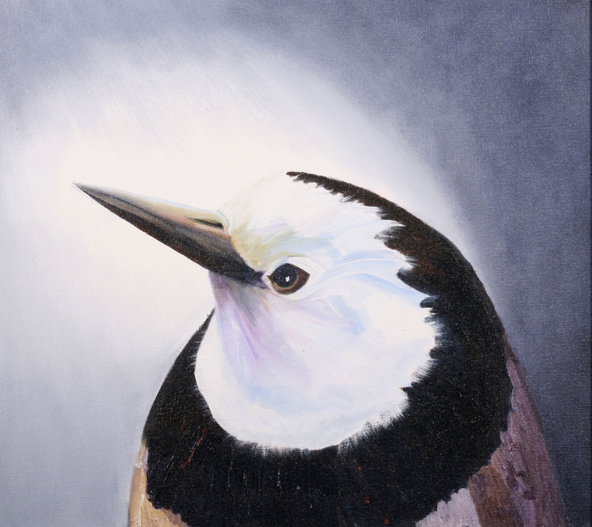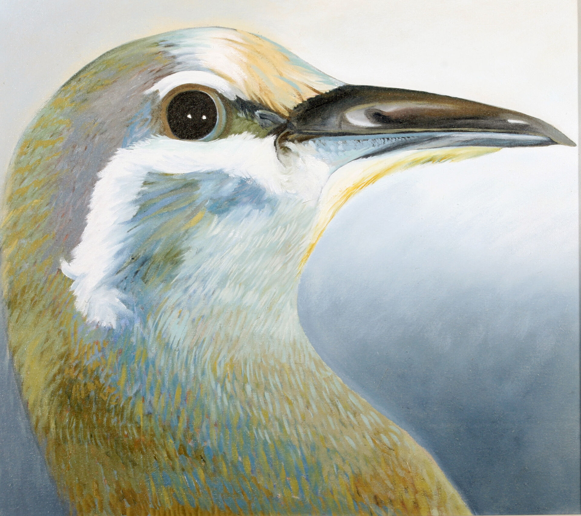 The collection of more than 30 oil paintings of bird heads came about in 2006 when I decided to abandon printmaking as my major means of artistic expression. It was a wrench to sell my 30 inch etching press and make the change to painting, but I needed a new challenge. The bird portraits became an interesting subject for me to develop new skills in an unfamiliar medium.