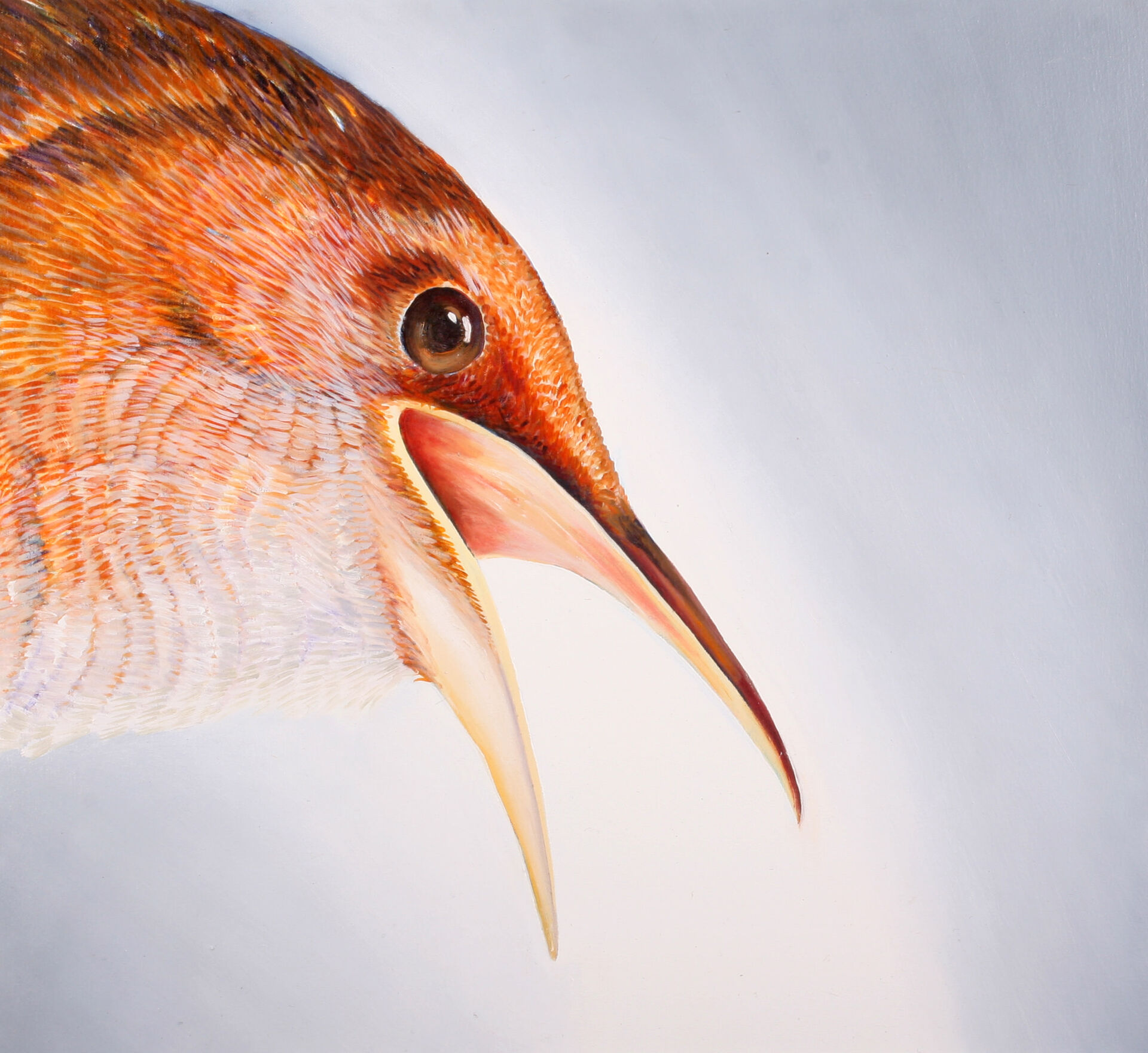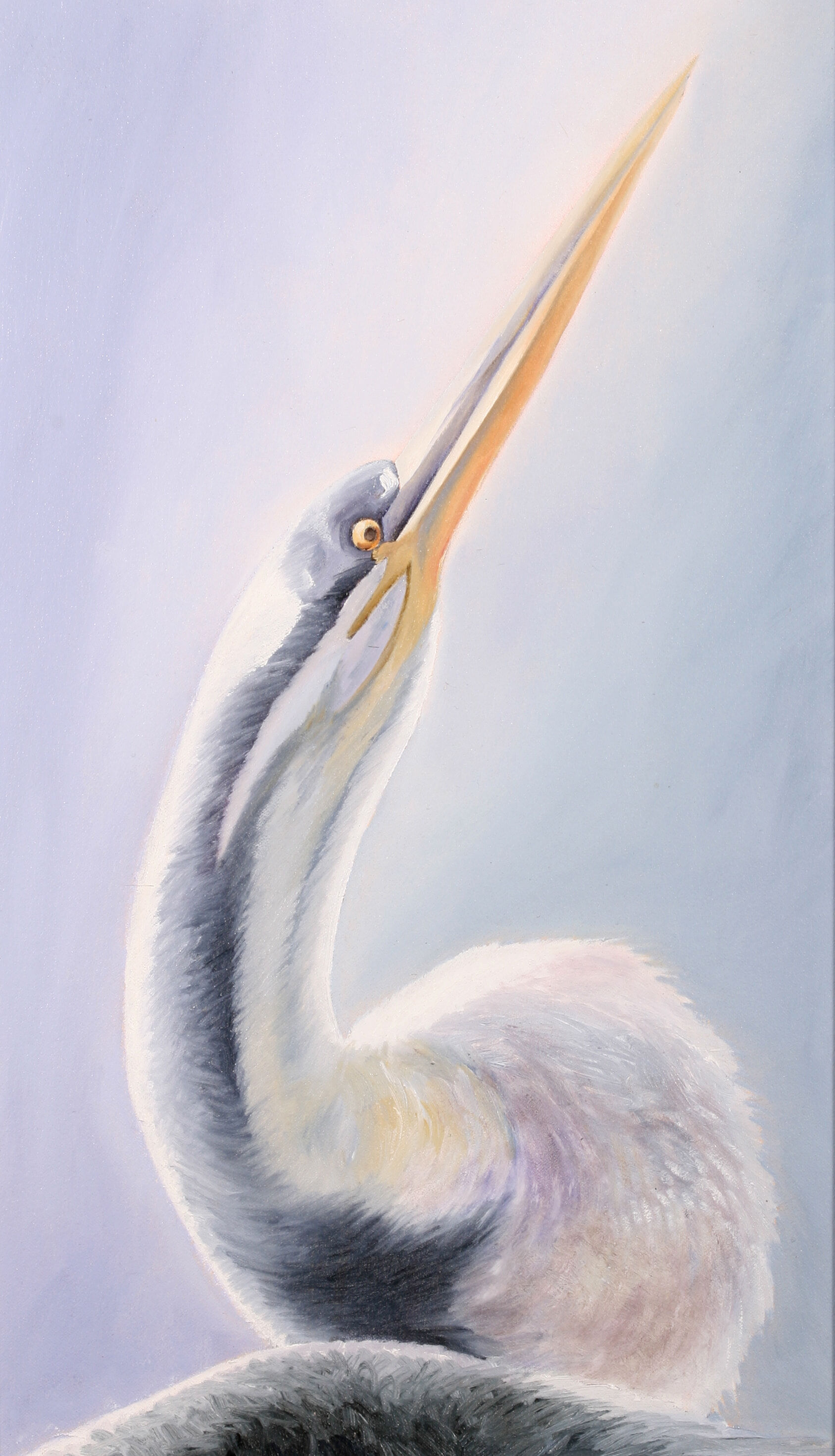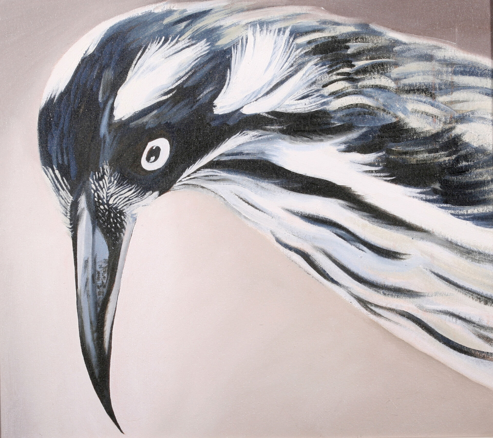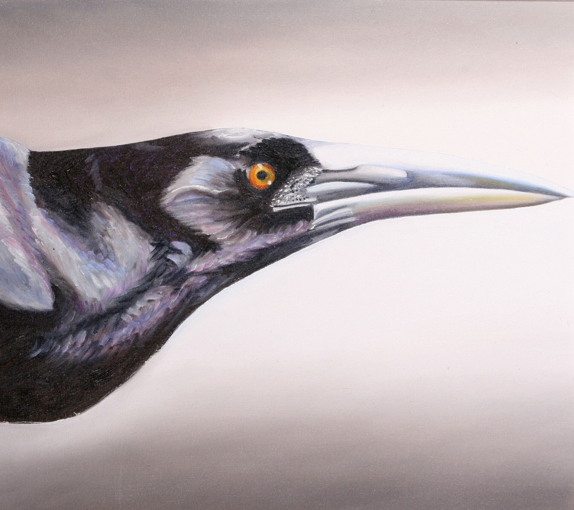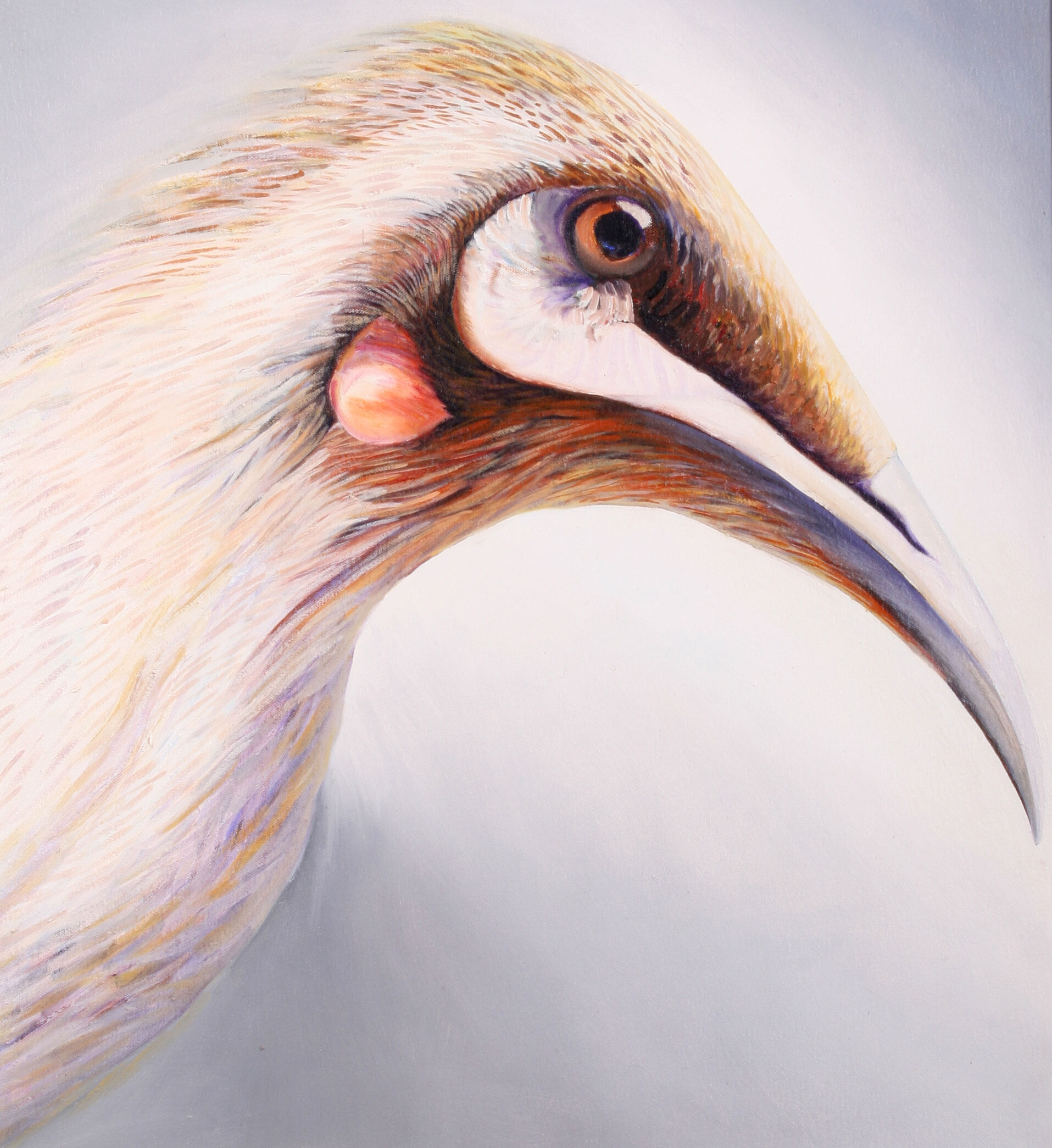The collection of more than 30 oil paintings of bird heads came about in 2006 when I decided to abandon printmaking as my major means of artistic expression. It was a wrench to sell my 30 inch etching press and make the change to painting, but I needed a new challenge. The bird portraits became an interesting subject for me to develop new skills in an unfamiliar medium.