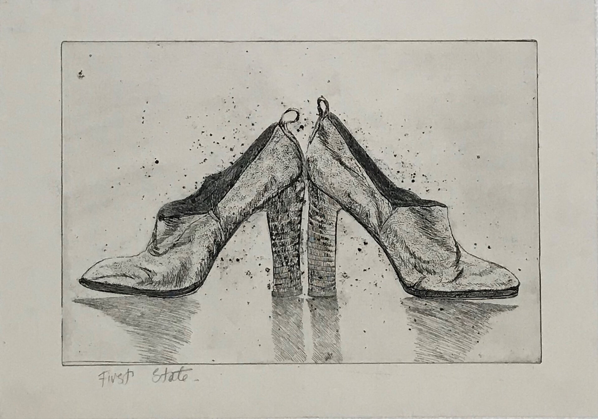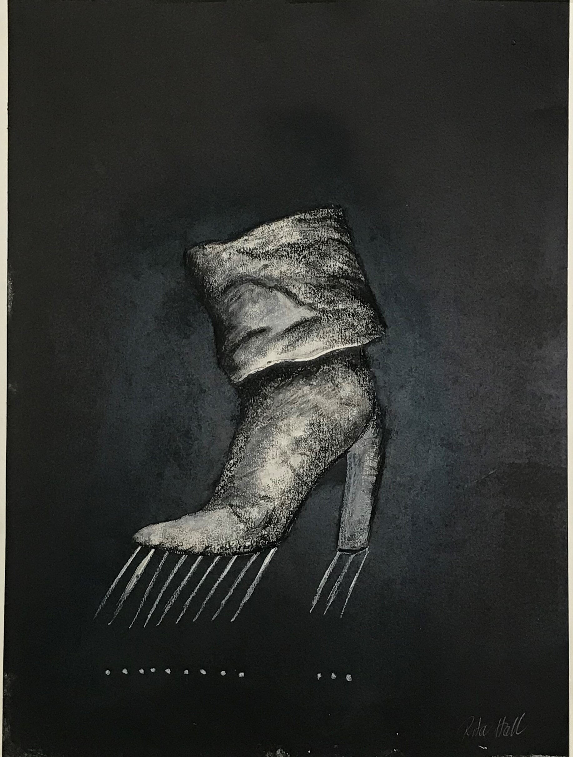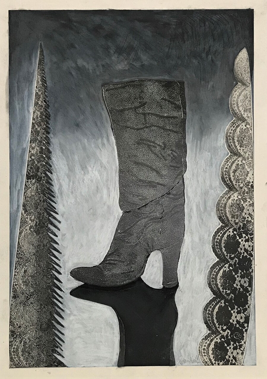 It was a shock to realize in 1997 that I was 50 years old, and that I still had much work to do. I needed to somehow mark the occasion and considered how being 50 may be different than an earlier age. High heel boots and shoes became the symbol for me. I gathered all the wonderful shoes I could no longer wear; they were all too painful and this became a moment of recognition. I made many drawings of my shoe collection, finding ways to exaggerate their elegant but painful qualities. Like the stones, I saw they had a quiet simplicity resonating with other meanings and beautiful as well.