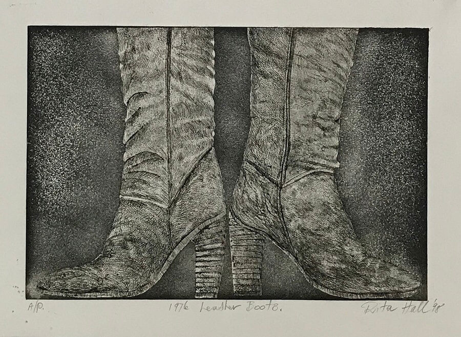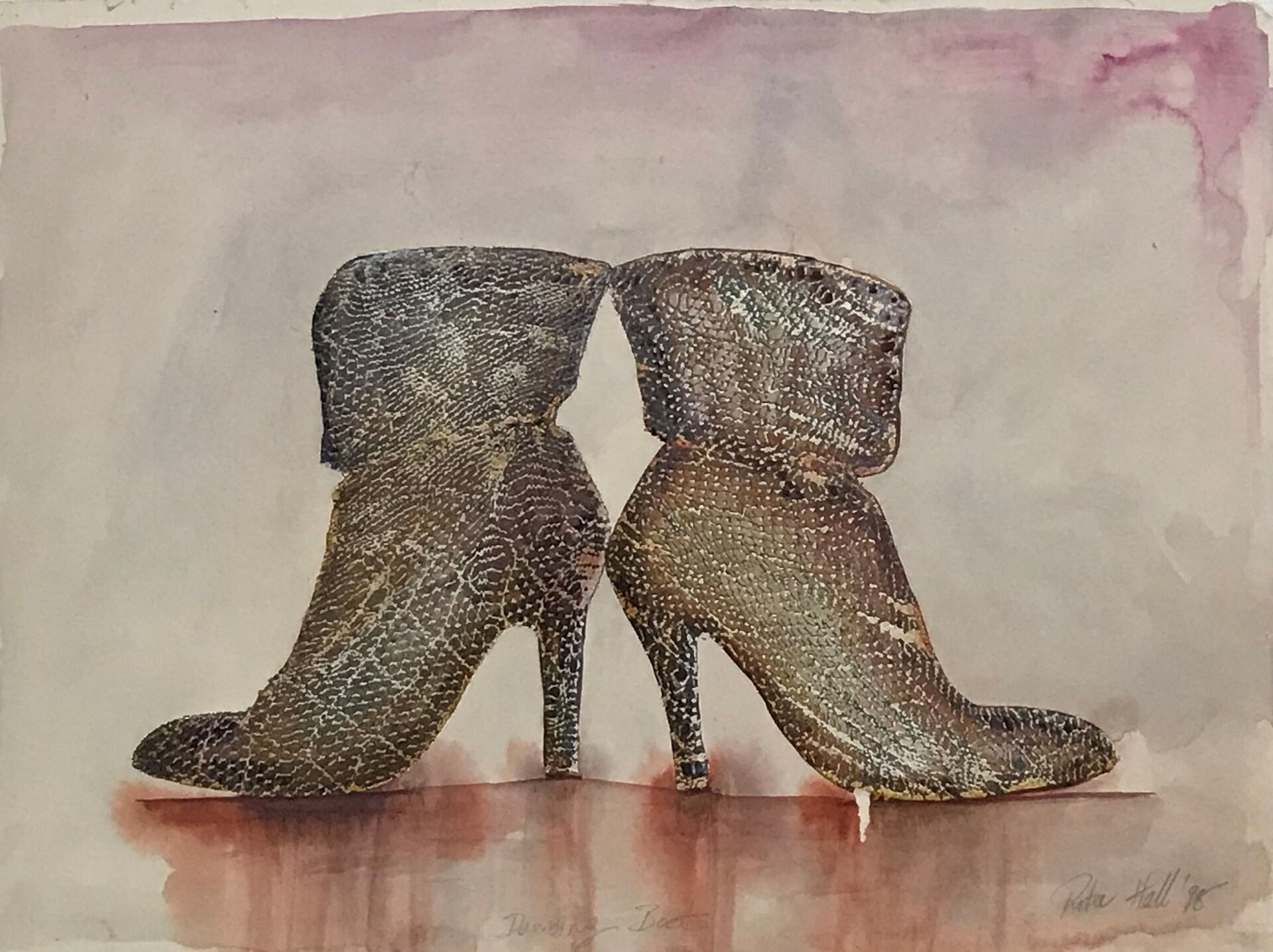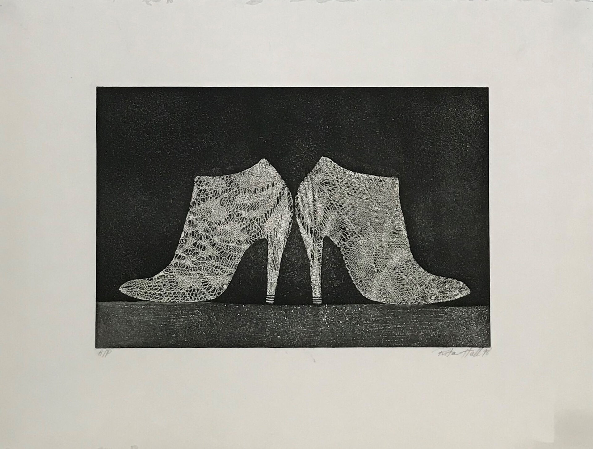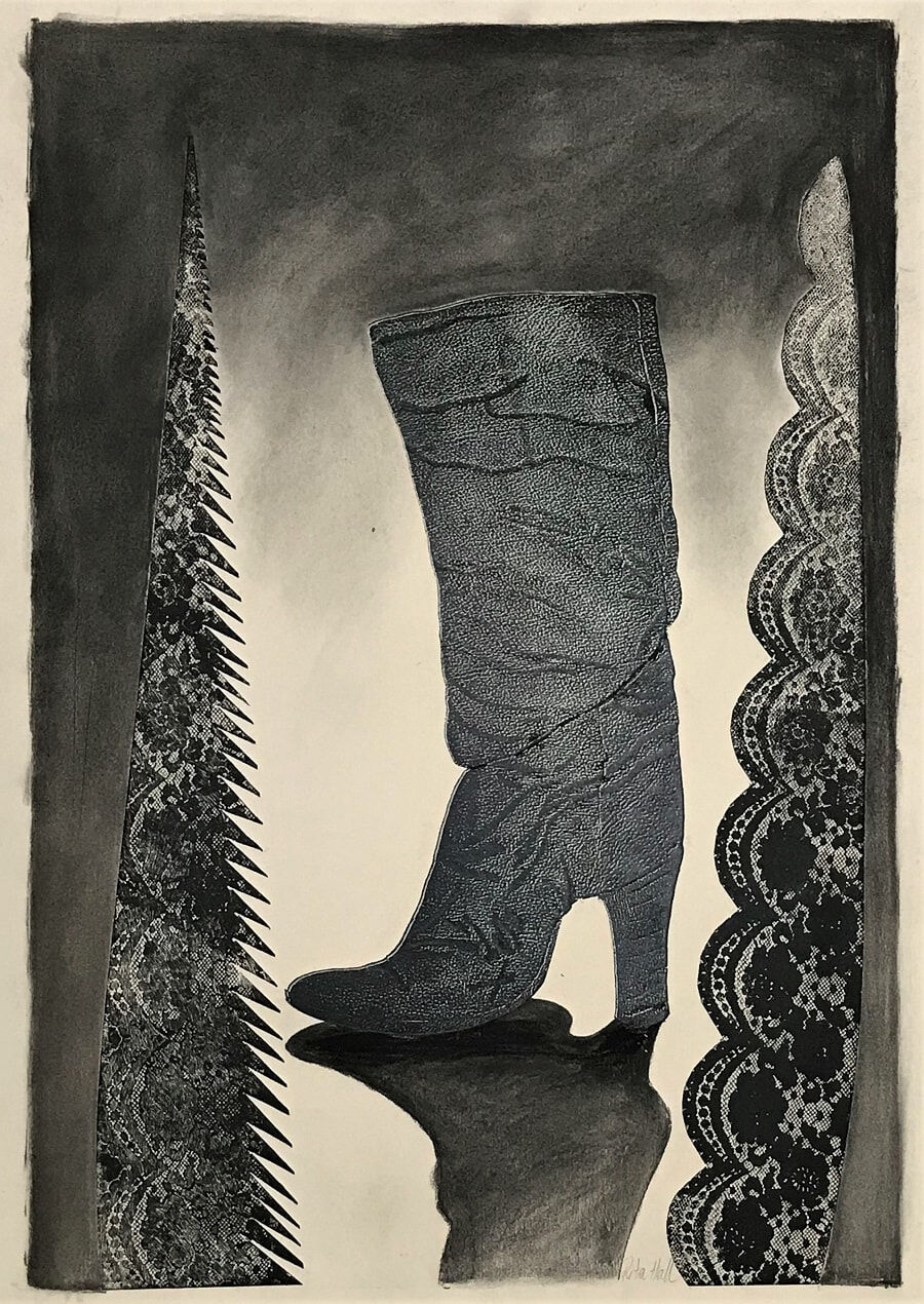 It was a shock to realize in 1997 that I was 50 years old, and that I still had much work to do. I needed to somehow mark the occasion and considered how being 50 may be different than an earlier age. High heel boots and shoes became the symbol for me. I gathered all the wonderful shoes I could no longer wear; they were all too painful and this became a moment of recognition. I made many drawings of my shoe collection, finding ways to exaggerate their elegant but painful qualities. Like the stones, I saw they had a quiet simplicity resonating with other meanings and beautiful as well.