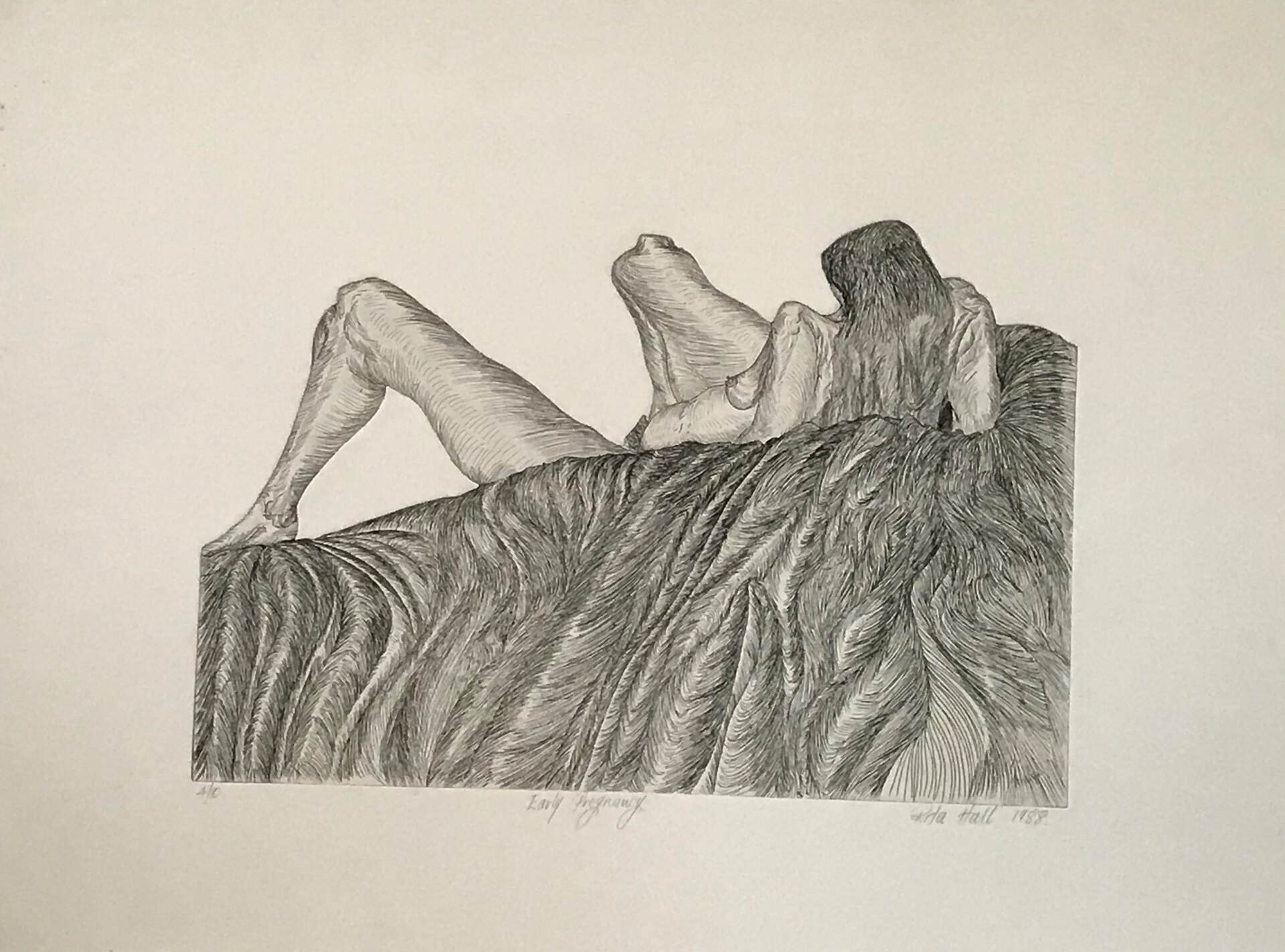 In 1988 I produced an etching exhibition of life models which were shown at Tynte Gallery, North Adelaide. Few of these prints survive now and the plates were destroyed when the editions were completed.