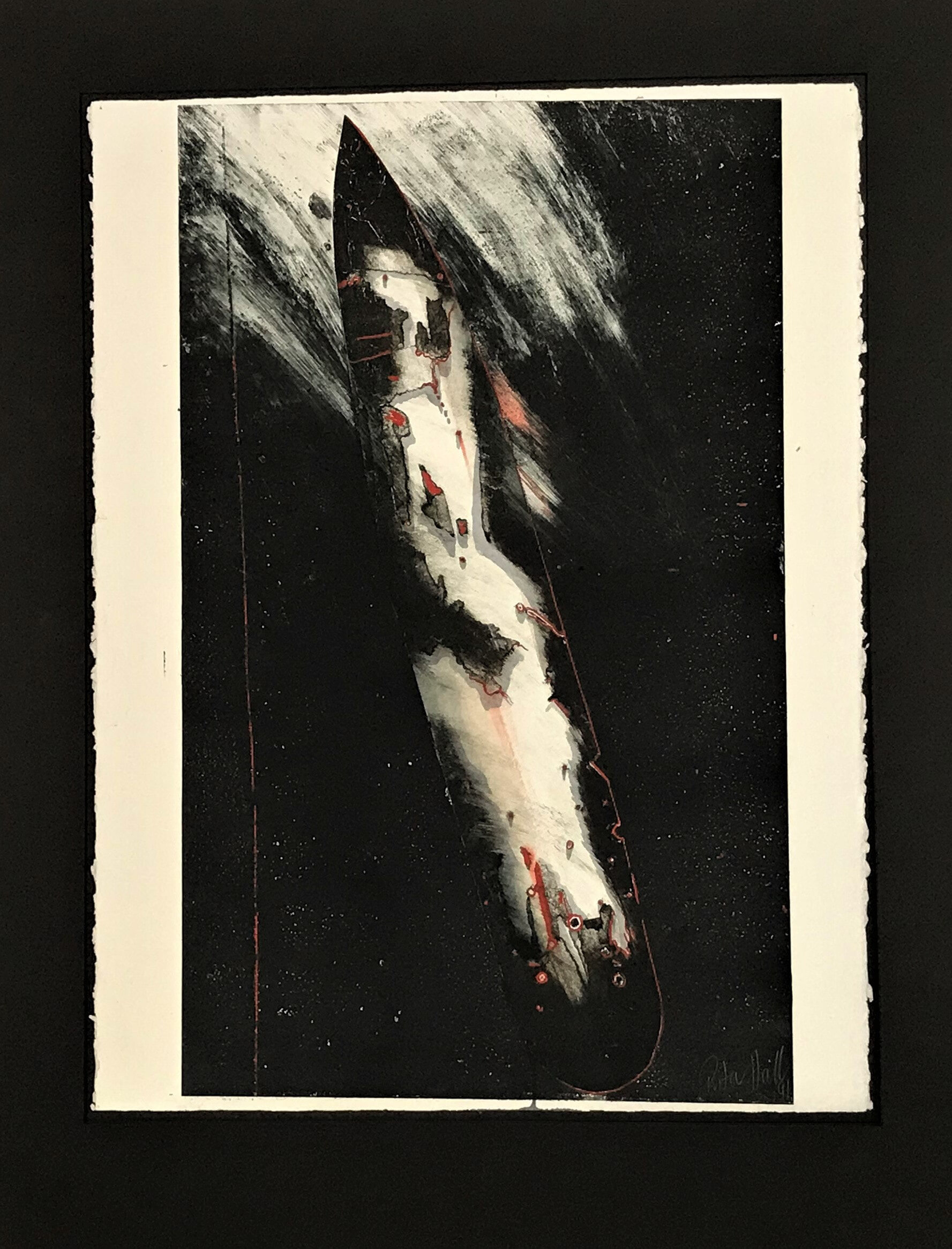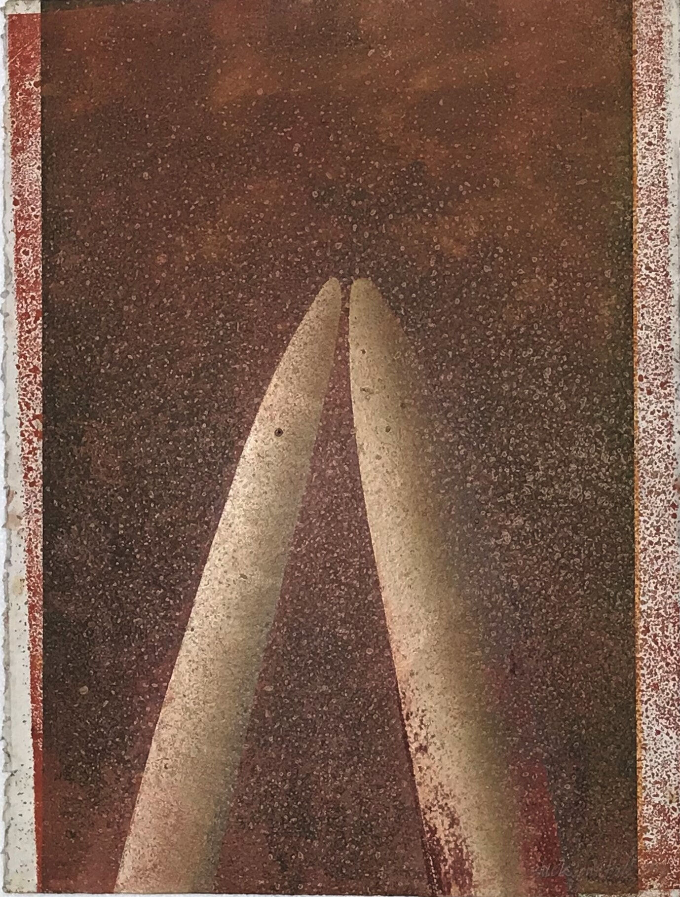 A selection of unique state prints is incorporated within this web site, showing many and various approaches I took to exploit my experimental methods. The prints have been admired for their unusual textures and colours but more often for their mystery.