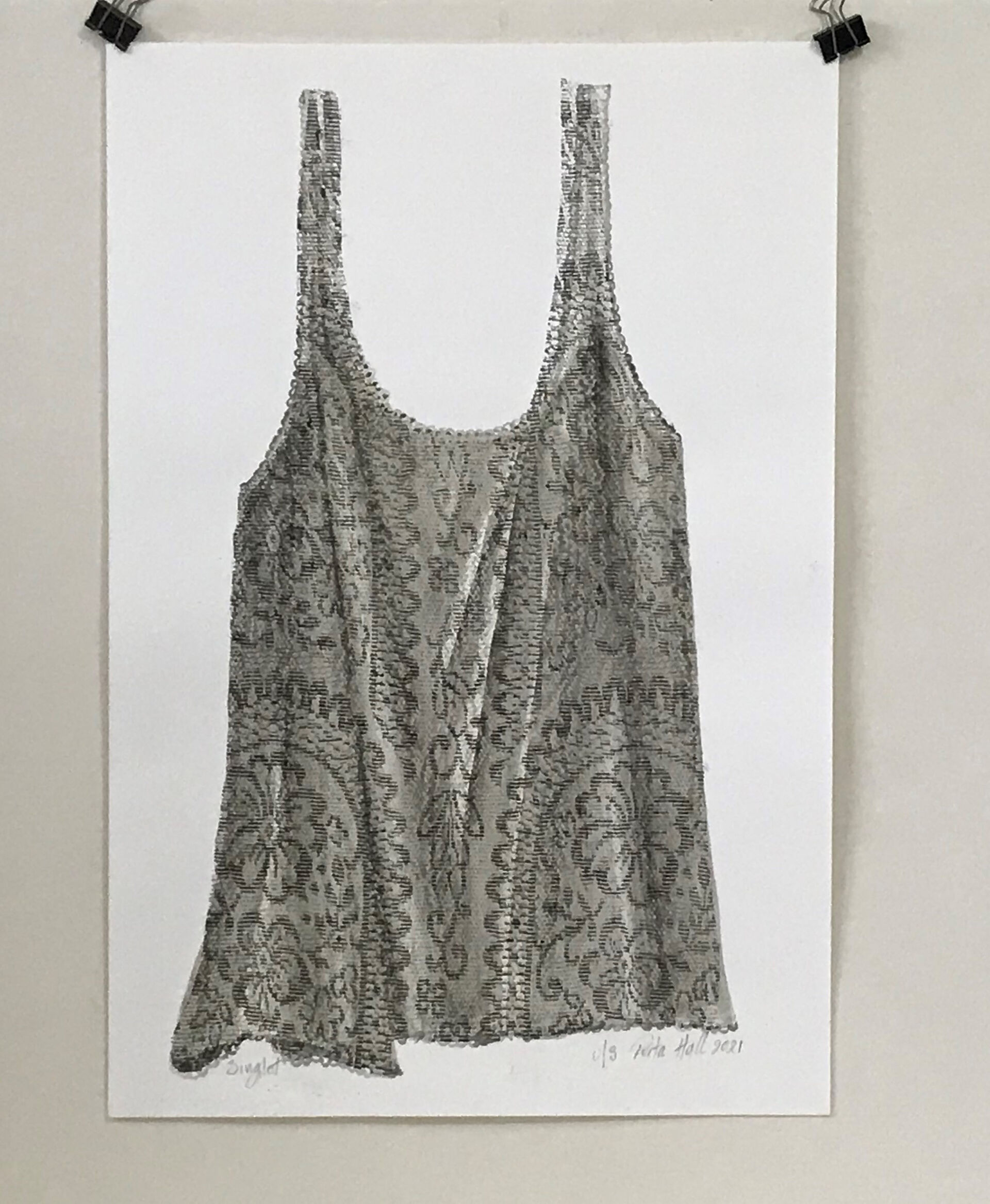 'Singlet', Nice to wear. One framed ($1500), two unframed ($1300) click 'ENQUIRY' to contact studio to purchase 'Singlet' .