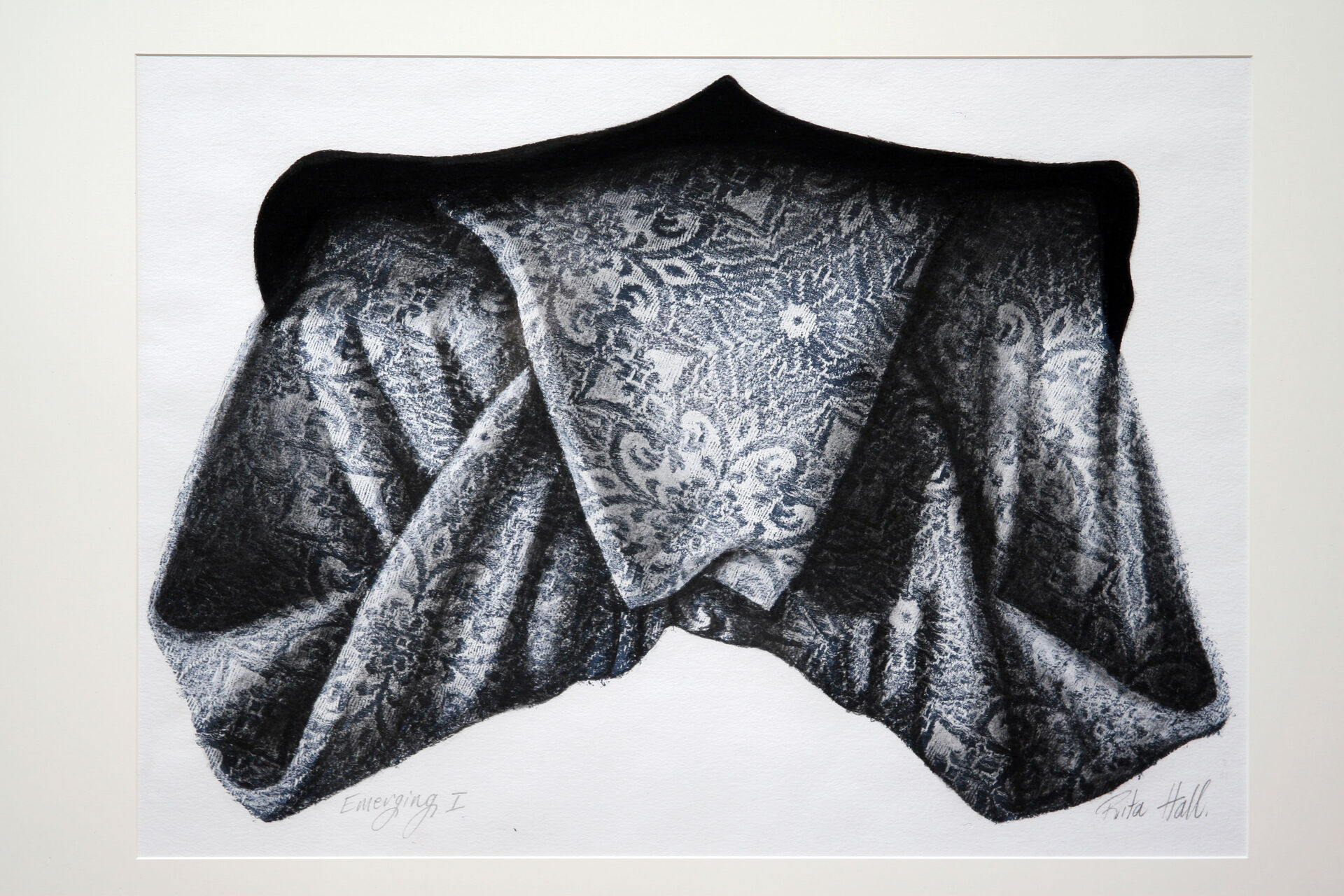 In this latest series, an instinctive feel for fabrics and printing techniques continue to be active elements. However, the finished work has the kind of intensity and rendered character that is closer to the tradition of drawing than any conventional branch of printmaking.