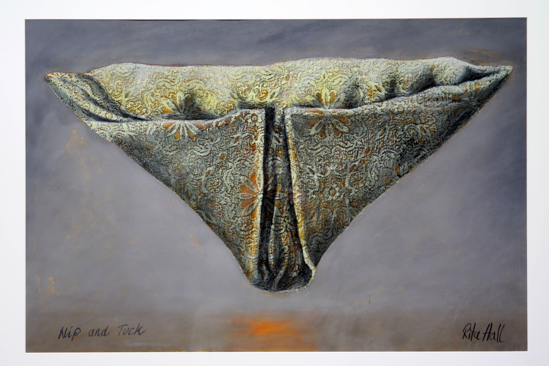 The fabrics are supple, vivid and richly textured. They embrace snug envelopes and swathe sumptuous parcels. Some have rumpled features; others are free-floating shrouds or bright bolts from the blue. Out of everyday cloth Rita Hall conjures material objects with a provocative heart.
