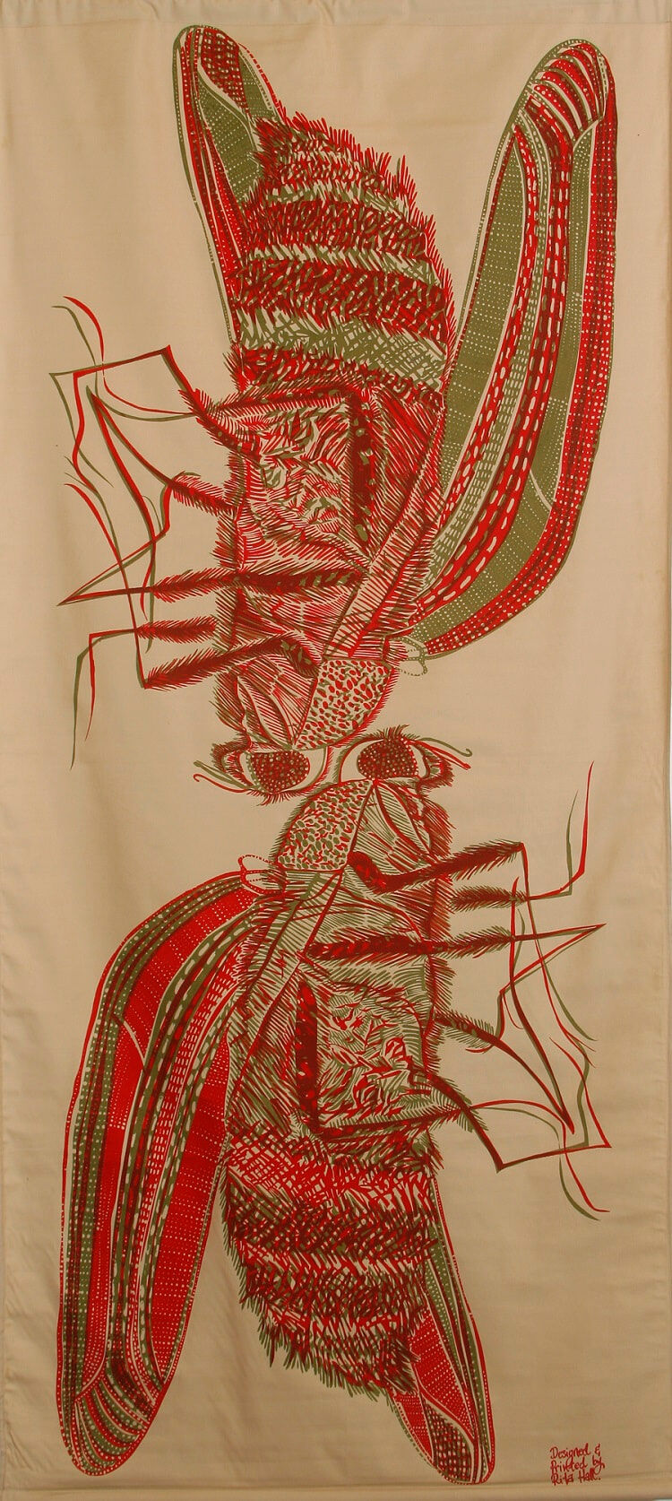 Etchings had become my first love and means of expression but I saw an opportunity to make much larger images, graphic drawings on fabric, inspired by the dramatic lengths of fabrics by Marimeko I had seen in Europe.